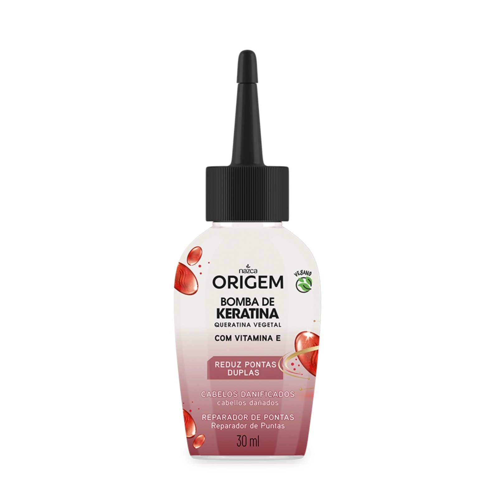 Origem Keratin Bomb Conditioner reduces split ends in damaged hair.